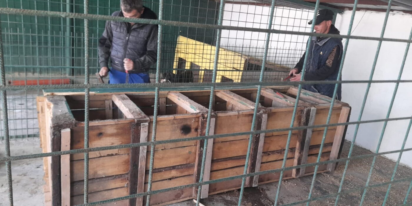 Zi de zi ne asigurăm că ”locatarii” noștri beneficiază de condiții optime de cazare și hrană! Astfel, efectuăm ori de câte ori este necesar lucrări de reparații și renovare ale cuștilor din padoc, așa cum se poate observa și în fotografiile de mai jos. Deoarece sezonul rece începe să-și intre treptat în drepturi am adaptat